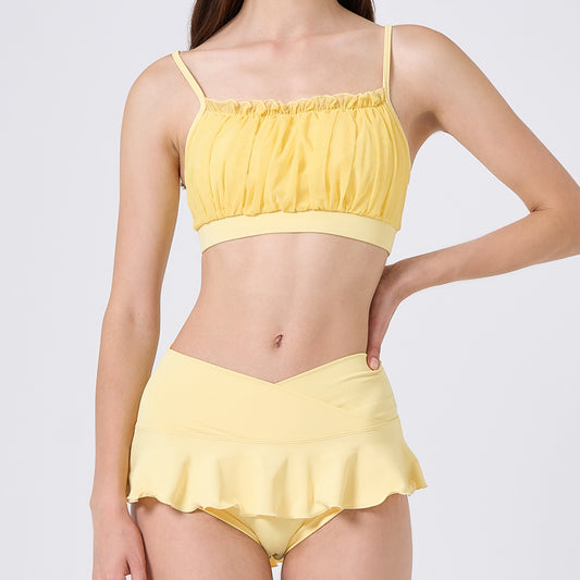 Golden velvet pole dancing clothing underwear female polewear lace-up bra suspenders shorts suit