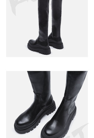 Over-the-knee boots women's fall/winter 2024 new black stretch platform increases the tide of K-dance jazz dance glaze knight boots